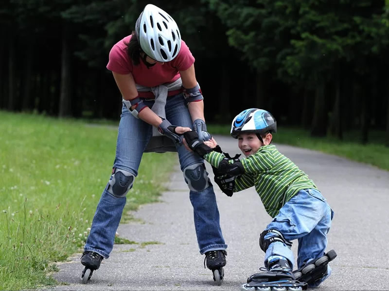 - Patinar siempre utilizando casco, rodilleras y coderas. Estos son accesorios de protección importantes durante la práctica de este deporte en caso de perder el equilibrio y caer.